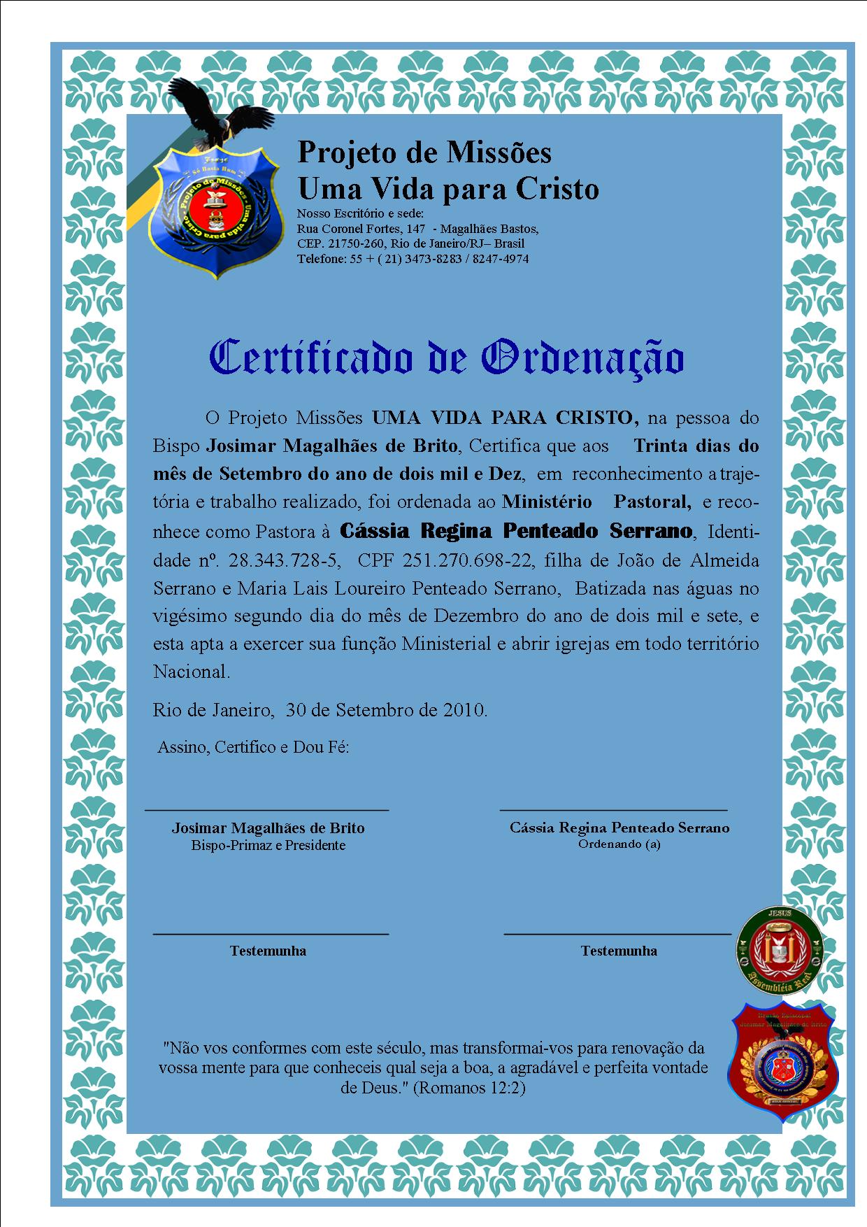 pela sua Ordenação ao Ministério Pastoral , na Cidade de Marília no estado de São Paulo. Receba nosso Carinho e afeto pela sua chamada, e estaremos orando para que seu Ministério venha a crescer a cada dia na presença do Altíssimo.